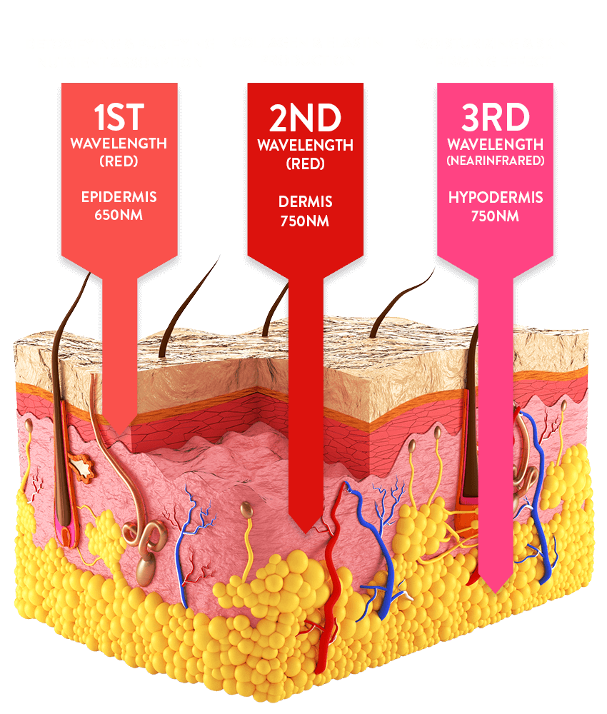 Intensive 3 wavelengths all skin layer care Proprietary technology wavelength band